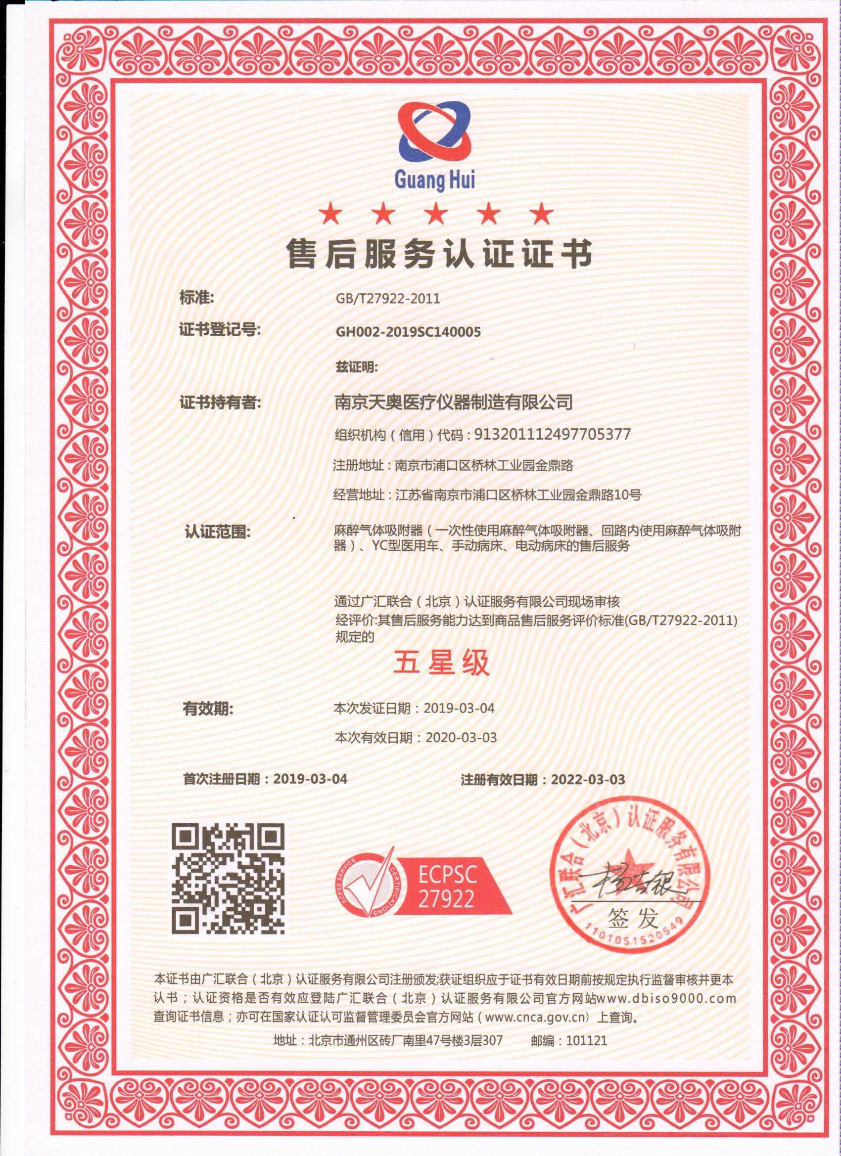 2019年2月,廣匯聯(lián)合(北京)認(rèn)證服務(wù)有限公司審核工作組來(lái)到我司展開(kāi)了售后五星服務(wù)認(rèn)證審核工作。